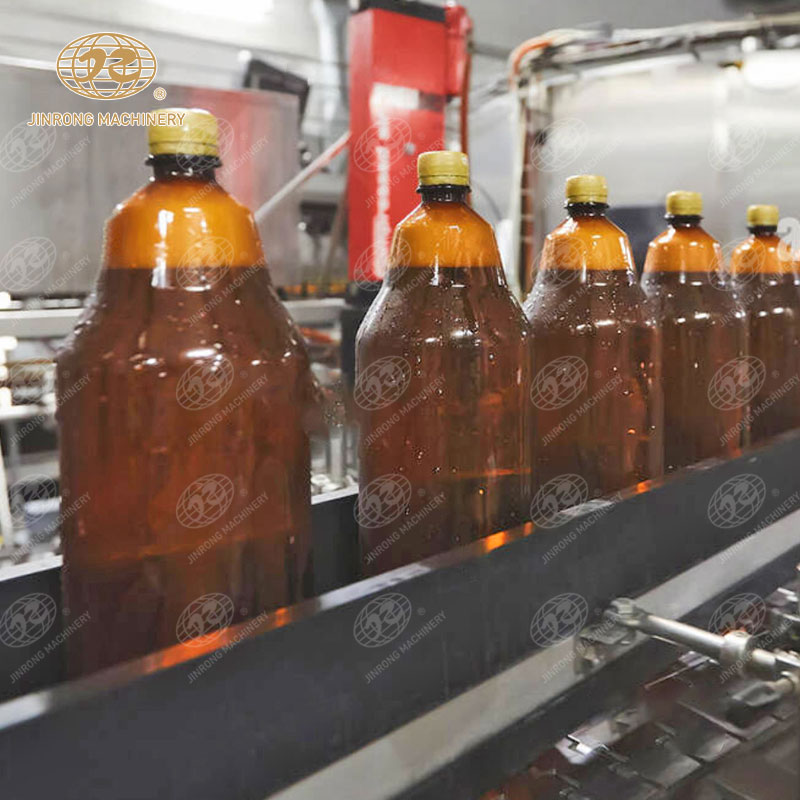 PET瓶啤酒灌裝生產(chǎn)線在灌裝前對PET瓶進行沖洗,以去除瓶內(nèi)的雜質(zhì)和殘留物,確保啤酒的純凈度和口感。
